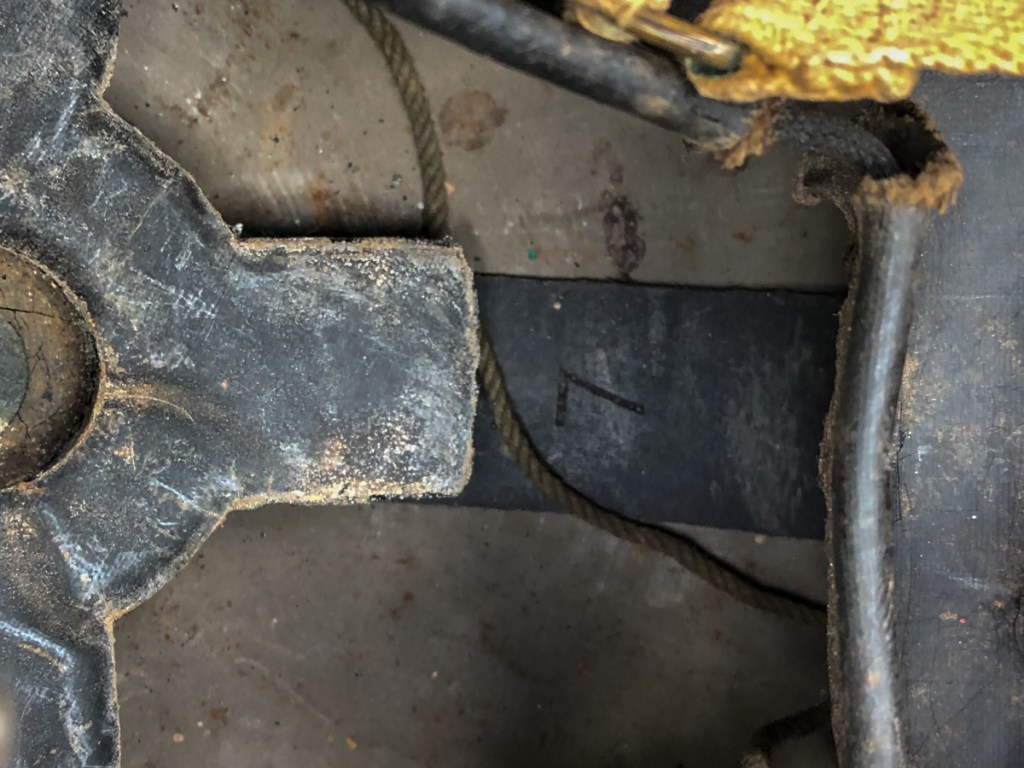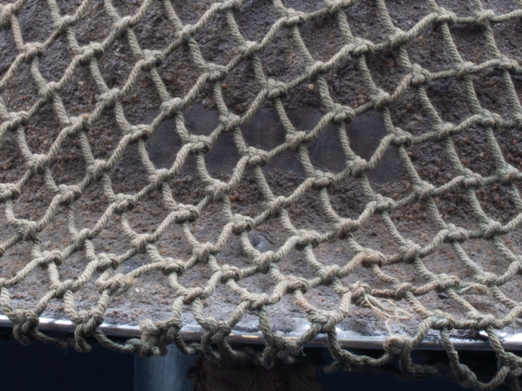Interestingly, you can see the outline of a small rectangle embedded in the rough, anti-reflective paint. This would have been a spot for a “flash” or unit identification which was subsequently removed. The two-colored net was made in Canada.