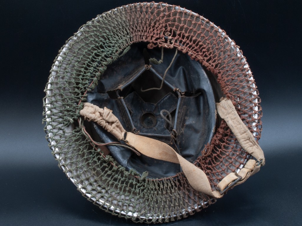Collector Notes: Earlier versions of the MKII have a bit more cachet among collectors although there is not a huge price difference. The Belgians produced their own version of the MKII in the early post-WWII years and these are sometimes fobbed off as British WWII pieces. The Belgian MKIIs are readily identified by their reddish cross pieces that hold the liner against the helmet shell. Although not standard, many wartime MKII have flashes or other insignia to identify units. These markings, naturally, can be of great interest to collectors.