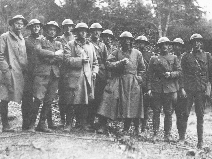 * “Period Photo’s WWI USMC Helmets w/EGAs” Post #46, “USMC officers that had survived the battle for Belleau Wood. The photo was allegedly taken shortly after the capture of Belleau Wood.” Devildog34.. US Militaria Forum. July 5, 2015. Accessed April 14, 2022. Original citation sought.