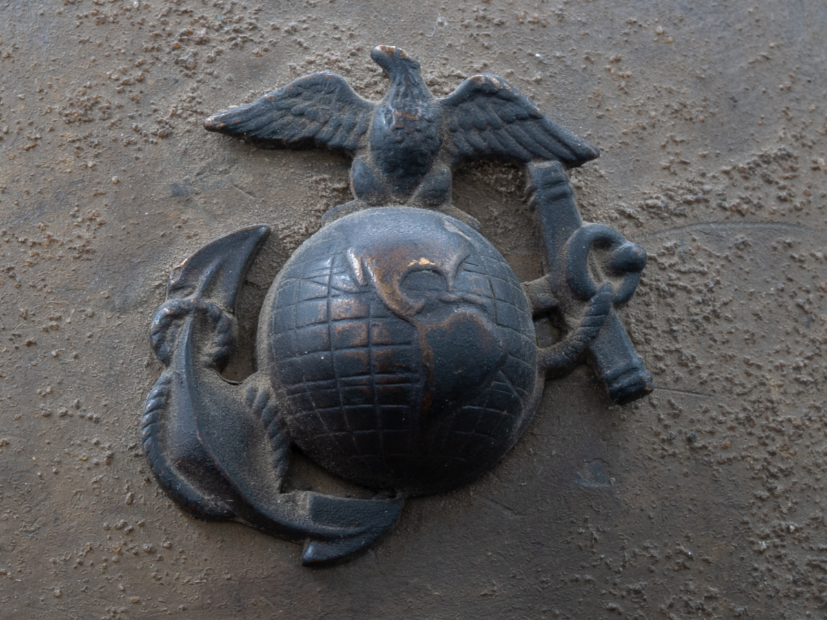 General Information: The application of US Marine Corps cap badges to steel helmets was a common practice in the post-World War One period, but was this was also done, to a lesser extent, during the conflict. The debate among collectors about whether EGA (Eagle, Globe, and Anchor) badges were used during the First World War was been settled by the study of period photos (e.g. see photo above).[1] It seems that practice was more common among USMC officers, but was also done at least occasionally by enlisted men.