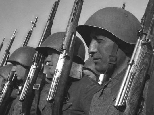 General Information: The SSh-39 replaced the SSh-36. Together with the SSh-40 it was the main helmet used by the Soviet soldier during the Second World War. The liner design carried over from the SSh-40, although early-production versions of the helmet had a black oil cloth liner. The helmets initially had Red Army stars stenciled on the front, but this practice was eventually discontinued. The SSh-39 was produced in four sizes “POCT” 1-4. Externally the SSh-39 was identical to the SSh-40 but for the number and location of the rivets holding the liner in place. The earlier model had three rivets higher up on the helmet shell, while the later model had six rivets lower down. As with the SSh-36 black ink stamps indicated the year of production, the size “POCT,” the factory where it was produced, and a lot number.