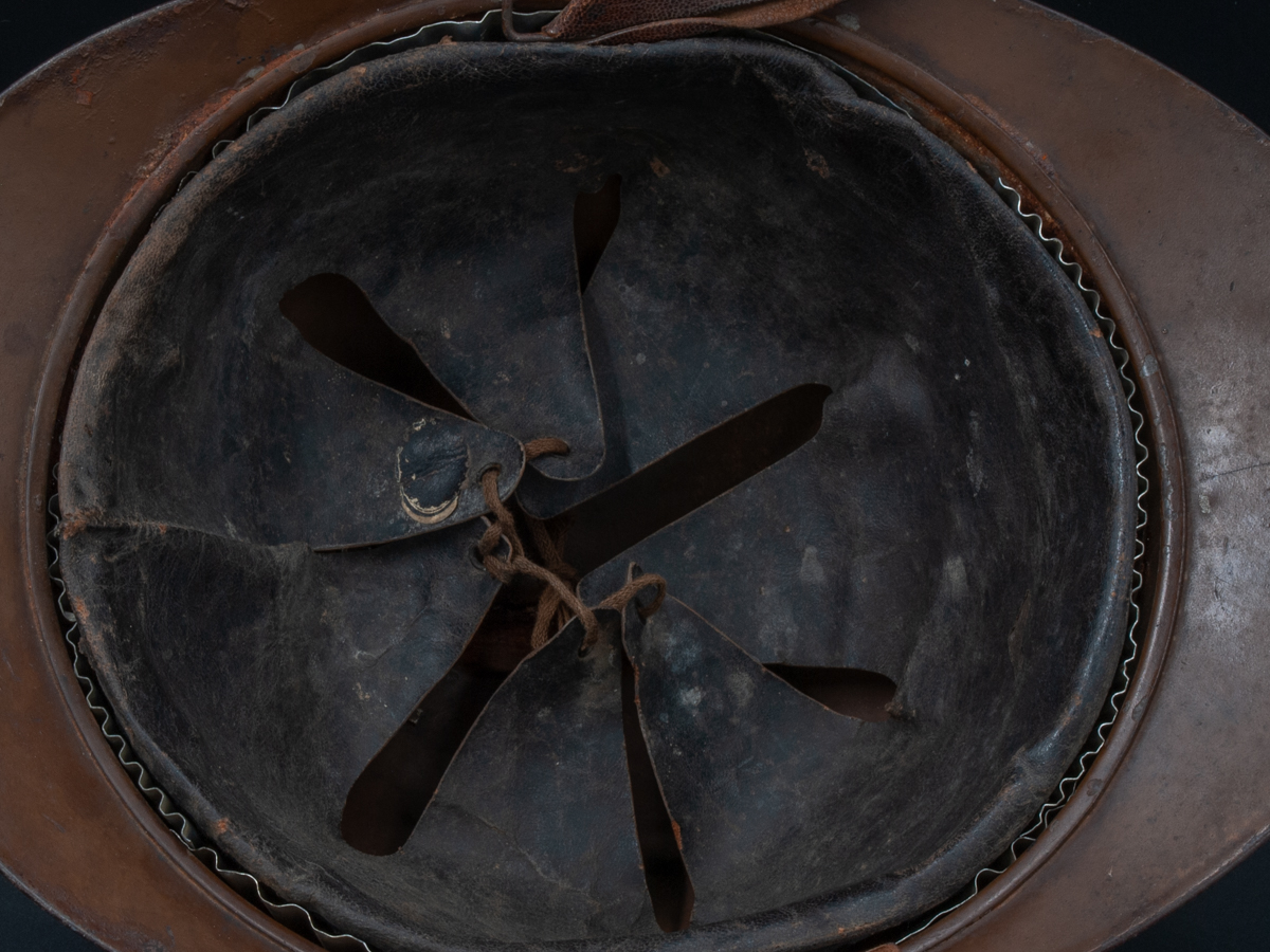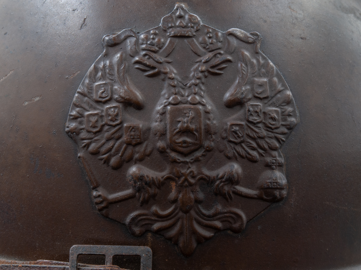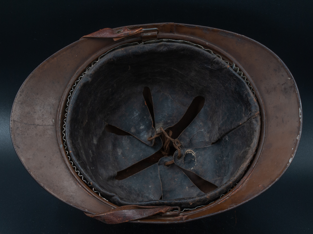 Displayed Example: In 1972 I tagged along with my father on a business trip to Europe. While in Munich we stopped at the shop of Jan Kube, a well-known German auctioneer of antique militaria. My father bought the helmet photographed here on that visit. Later, back in the States, Dad let me keep the helmet on my desk while I was writing a paper for school on the Battle of Tannenberg. Naturally, as a good helmet collector should, he explained that steel helmets were not in use at the time of that battle, but it was still a cool thing to have on my desk for a while. Later, as an adult and having reentered the collecting field, I was clearly coveting this and a few other steel helmets that my father had been holding on to. After a while he relented and transferred this helmet to my collection where is remained for a couple of decades.