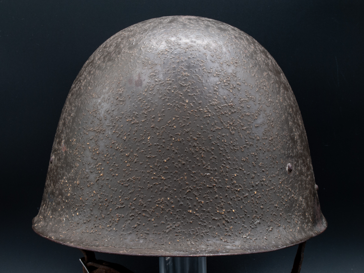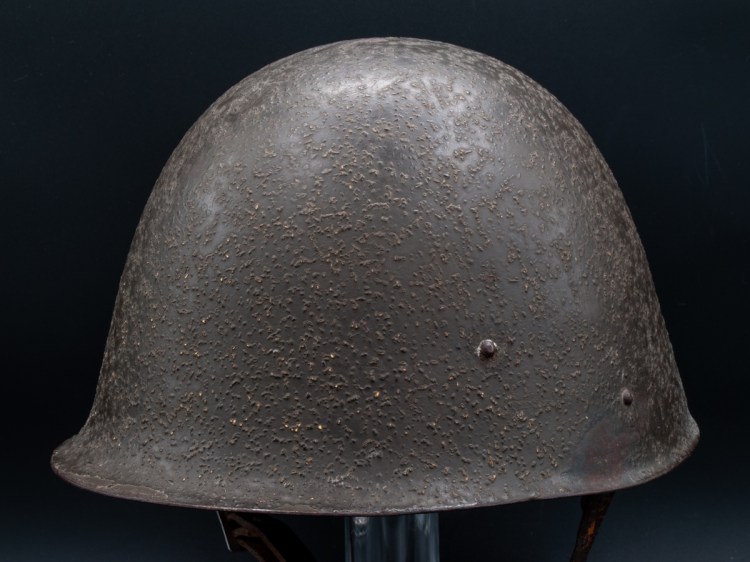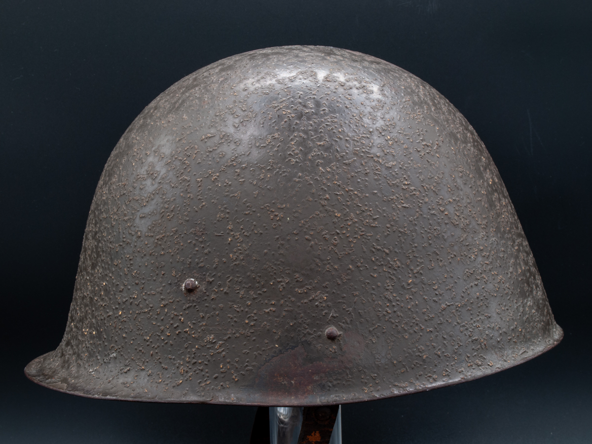 The post-war version of the helmet, the wz.31/50 are often doctored to look like wartime versions of the helmet. This usually involves repainting the smooth painted helmets with something that looks like the cork infused anti-reflective paint used on the older helmets. This is a difficult effect to replicate well and the fakes can often be identified through comparison with originals. The wz.31/50 had extra rivets. Instead of two rivets on the front, the newer helmets had four with two paired one on top of the other. In back instead of two rivets, there are three, all stacked vertically.
