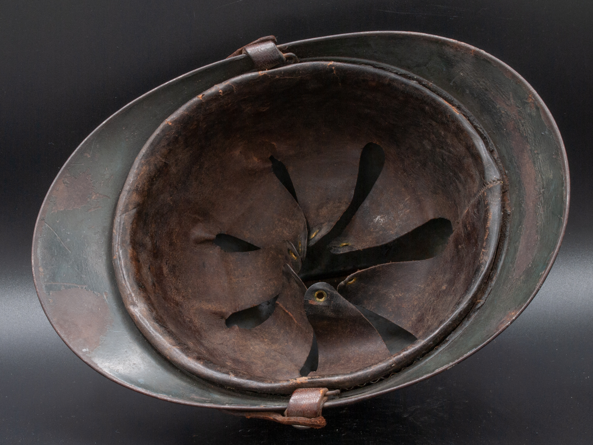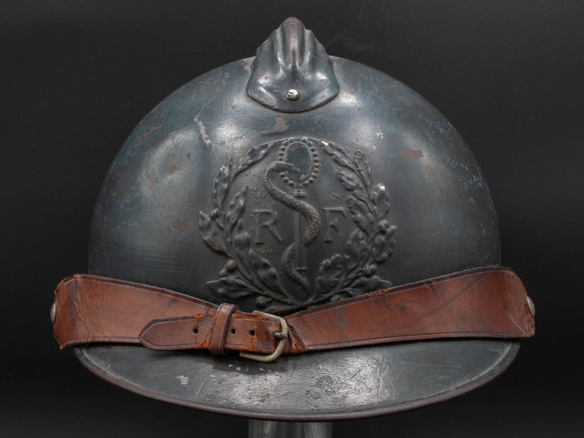 Collector Notes: If you were to rate the eight WWI statutory helmets used by the French in terms of rarity, the medical services helmets would fall somewhere in the middle. They are not that easy to find, but they do turn up from time to time.