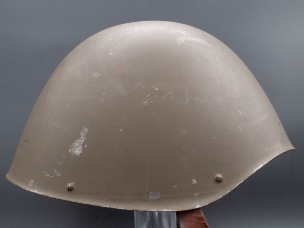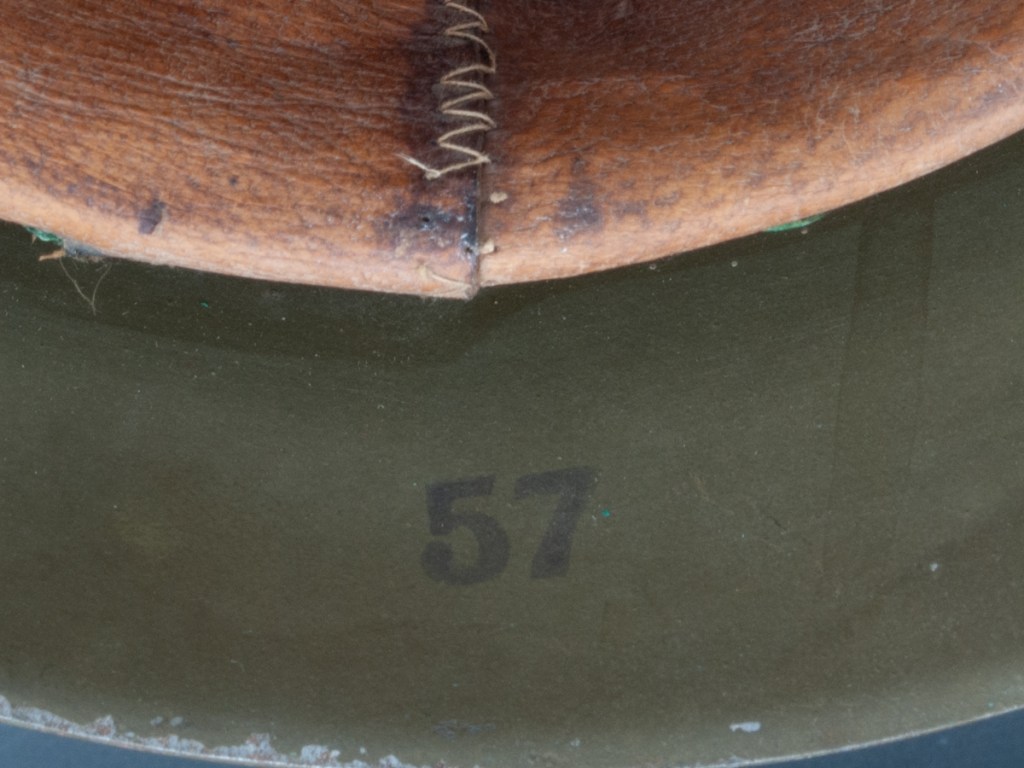 Collector Notes: These helmets are moderately difficult to find but if you are patient, they can be acquired. They are also moderately priced. Many surviving examples seem to be unissued, so they are often in nice condition. Most of the helmets on the market are the smaller size 55s. The size 57s are significantly less common and the larger size 59s are very scarce. I suspect that the smaller helmets were over-produced and many of these ended up in storage, whereas the larger sizes were mostly issued and ended up rusting on old battlefields.