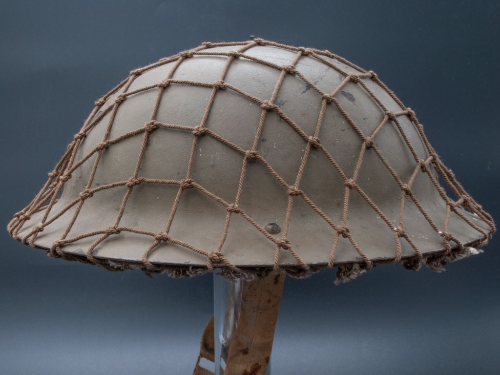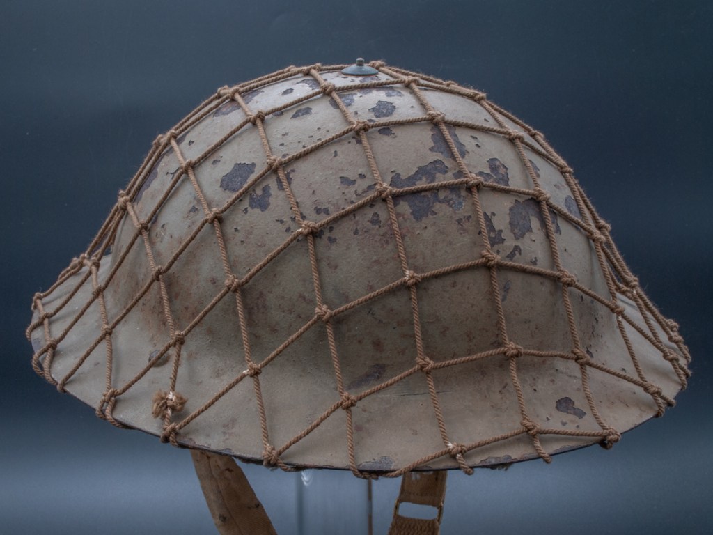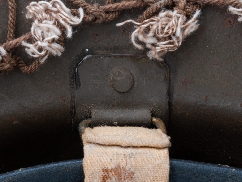 Displayed Example: This New Zealand MKII has the typical “NPZ” logo on the chinstrap lugs along with the date, 1941. The liner band has the year stamp 1942, and size stamp 7. It also bears the manufacturer’s initials, T.T.C. This stands for the “Teddy Toy Company” of Degenham, England.[3] Apparently, at least some of the liners used to complete Australian MKII shells for the New Zealanders, came from Britain. The rim of the helmet has is stamped “C.S. 1564.” The “C.S.” stands for Commonwealth Steel of Australia.[4] The net on this piece is a type frequently found on Australian and New Zealand MKIIs. It appears to be original to the helmet.