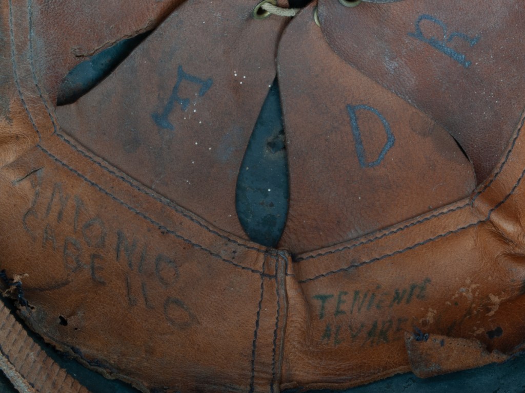 Displayed Example: I bought this helmet on eBay in 2023. It filled a gap in my Spanish Civil War collection, but the main thing that drew me to this piece was the writing in the liner. It has two names: Antonio Cabello and Teniente (lieutenant) Alvarez. In addition, it has the initials “F.D.R.” and “A.” The helmets used by Republicans sometimes have militia markings. I think that the “F.D.R.” initials likely refer to the militia column led by lieutenant colonel Francisco del Rosal y Rico. The unit was referred to as “Columna del Rosal,” but may have used, for identification, the initials F.D.R. The Columna del Rosal was an element of the Confederación Nacional del Trabajo (CNT). The CNT was the largest labor union in Spain at the time and it organized militia units to fight the fascists.