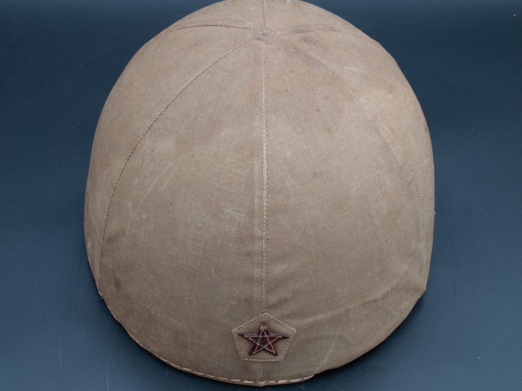 The helmet is an example of a First Pattern M41. On close examination, it is a beautifully made piece of headgear. There is a stamp on one of the leather suspension bands in the liner with that contains the Arabic number 17. This corresponds to the year 1942 in the nengō calendar system. There is a steel shell under the cloth cover. The metal is magnetic.