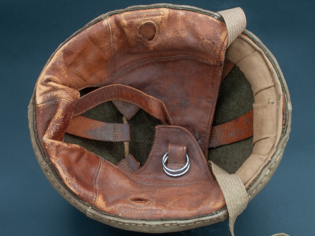 Collector Notes: At peak strength there were only approximately 12,000 men serving in IJA airborne units. Many of these would have served in administrative or support roles. Some paratroopers were issued regular IJA Type 90 helmets. The number of paratrooper helmets issued, therefore, must have been very small by World War Two standards. Certainly, there are few surviving Japanese helmets of this type. They surface very occasionally on the collector market and tend to command high prices.