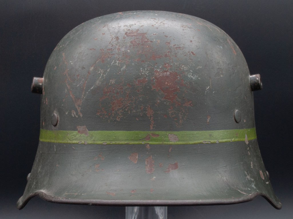 Collector Notes: Freikorps helmets are exceedingly rare and extensively faked. Most Freikorps troops used unmarked helmets. When painted, this was done at a small unit or individual level and the markings were not standardized. Some of the Freikorps post-period painted helmets were done a long time ago and have now aged convincingly. Others are artificially aged to fool the unwary collector. My advice is to be extremely skeptical of this type of helmet and avoid buying from anybody but a very knowledgeable dealer. Expect to pay a high price for a verifiable original specimen.