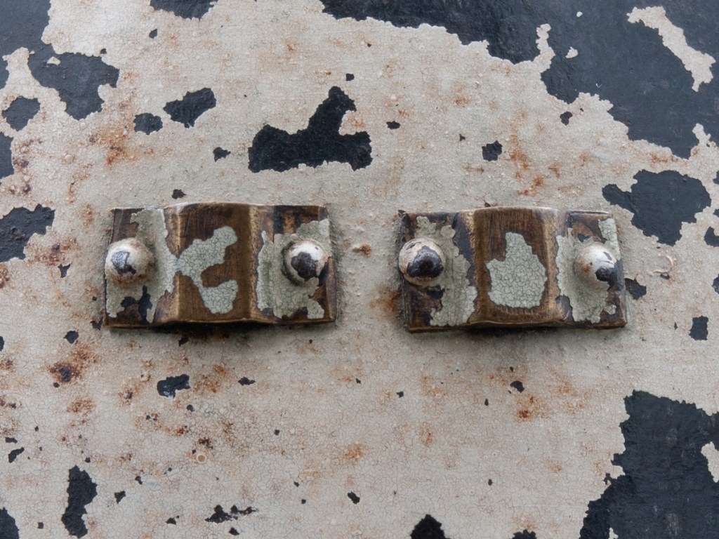 The Irish M27s can be quickly distinguished from their German cousins by the pair of brass brackets welded to the front. The purpose of the brackets was to affix a double pronged brass badge which was like the badge used on the caps of officers of the Irish Free State. The badge used on the Vickers helmets was adorned with the initials “FF” and the motto in old Irish Celtic Gaeilge, “ÓGLAIG NA h-ÉIREANN.” The “FF” stood for “Fianna Fáil” or “Soldiers of Destiny” in English. The motto translates as “Warriors of Ireland.”[2]