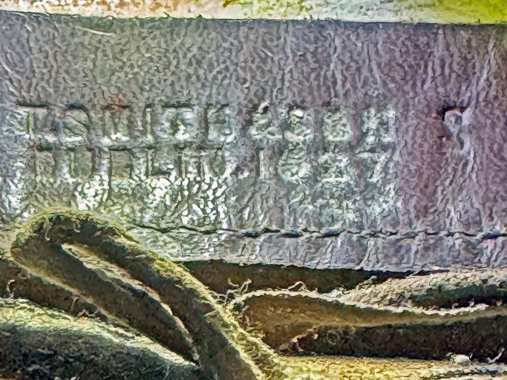 The T. Smith & Son firm of Dublin produced the helmet liners which bear the stamp of the manufacturer on the liner band. The size is indicated by an “L” or “S: stamped on the liner band.[1] Both the liners and chinstraps are copied from the German Model 1916 pattern. Unlike the German M16 chinstraps, however, the M27 chinstraps typically have one slide buckle, although some have two.