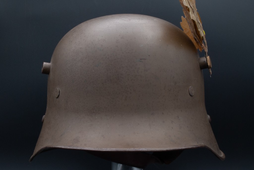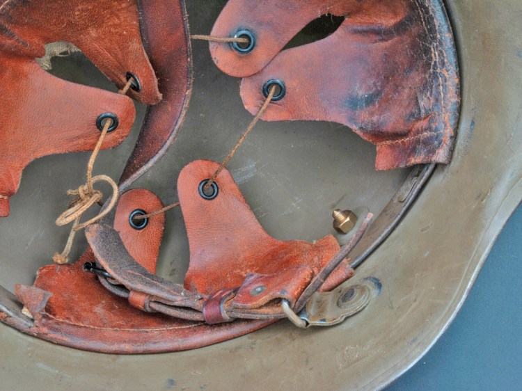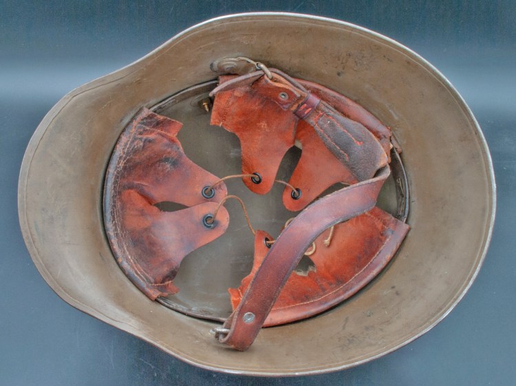 To further muddy the picture for collectors, the Czechoslovakians manufactured German-style helmets after the war. Since these were also made in factories that were part of the former Austro-Hungarian empire, these helmets followed the KuK pattern of having the chinstrap attachment lugs higher in the visor than the German-made helmets. The early Czechoslovakian helmets were painted brown, although later ones were painted green. Externally, these Czechoslovakian helmets, therefore, can be identical to Austrian helmets. One quick differentiator is that the Czechoslovakian helmets tended to have domed rivets for attaching the liner bands whereas the Austrian helmets tended to have flat rivets for this purpose. [4] There are exceptions to this rule, however, such as the postwar Berndorfer helmets which used domed rivets for chinstrap attachment.