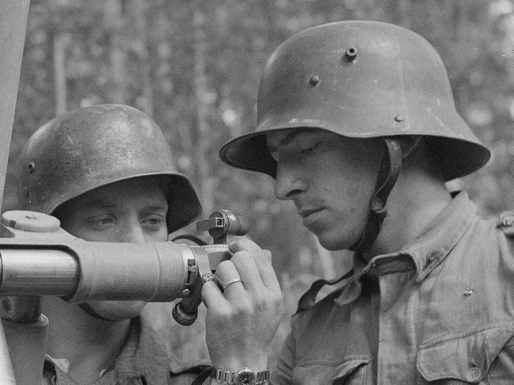 * Anuio. “From the Front Line to the Home Front 1939-1945.” SA-kuva-arkisto. Etulinjasta Kotirintamalle 1939-1945. Image 131589. Original photograph June 25, 1943. http://sa-kuva.fi/ Accessed February 14, 2025. Original caption: “The throw is being directed.” Archive note: “Finnish 120mm heavy mortar from 1940.” The location of the photograph is given in the archive as “Rajajoki,” which is the Finnish name for the river that separated Finland from Russia in the 1920s. The Russian name for the river is “Sestra.”