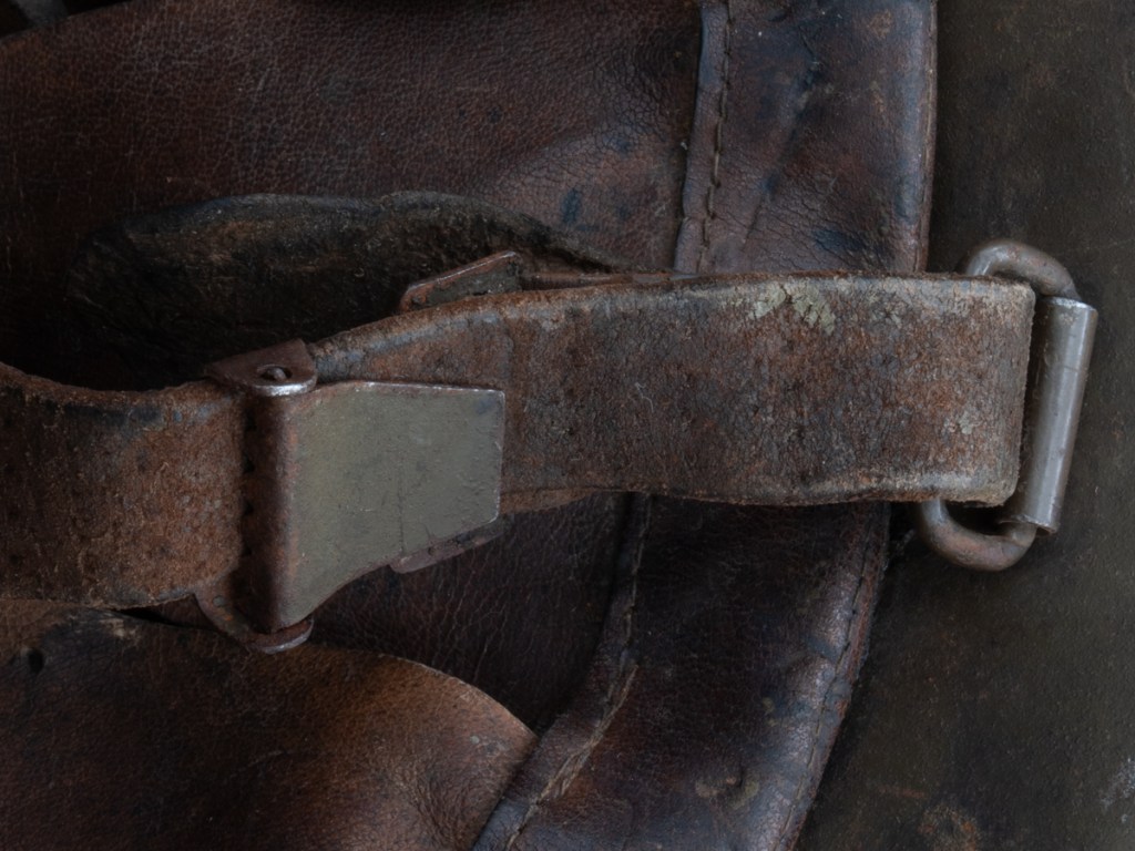 The chinstrap is almost the same as ones used on some Czechoslovakian helmets exported to Spain and Afghanistan (see Afghan). The difference being the split middle section of the chinstrap which was used on later production versions of the German model vz.20 and the Czechoslovakian vz.32. The chinstrap hardware with clip type attachment and sliding buckle were originally developed for the Austro-Hungarian Berndorfer helmets (see Austro-Hungarian Berndorfer). As with all M36s, there are no markings on the helmet shell.