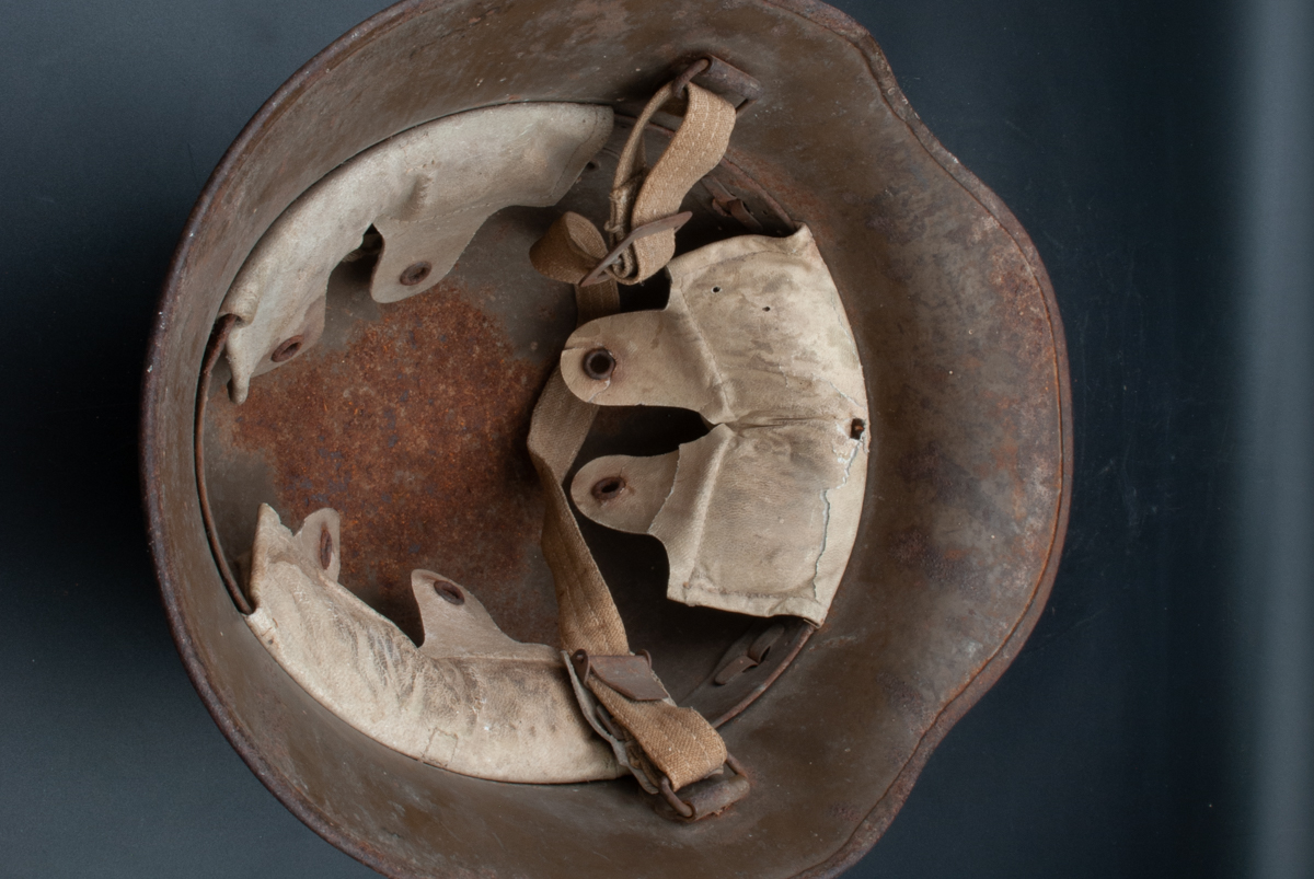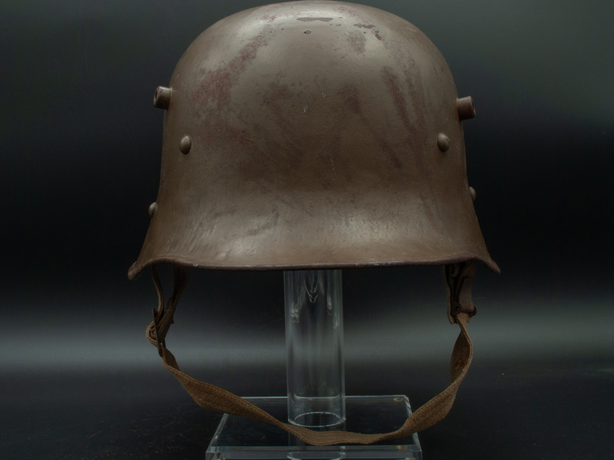 Complicating the picture for collectors is the fact that the Austrians produced a helmet very similar to the vz.20 and it can be difficult to distinguish between the two types (see Austrian M17). The Austrians tended to use flat rather than domed split pins for attaching the liners, although like the Czechoslovakians, they used both. A more reliable differentiator is the chinstrap. The Austrians used a leather chinstrap designated the Model 1925 (see Austrian M17 and Austrian Gendarme). This was a two-piece chinstrap made of sturdy leather using black painted roller buckles and two belt loops to hold the loose end of the long section.